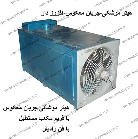 هیتر جریان معکوس به هیتری گفته میشود که جهت جریان شعله با جهت جریان باد زاویه 180 درجه داشته باشد.یعنی اولین نقطه ای که در دیک توسط باد خنک میشود داغ ترین