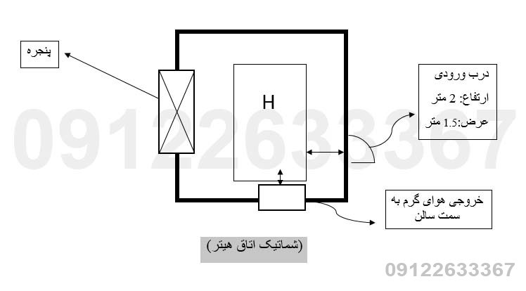 تذکر 3:ابعاد پنجره های اتاق هیتر یا اتاق سرویس بر مبنای ابعاد پنجره هواگیری هیتر مشخص می شود.که مساحت پنجره ها باید برابر یا بزرگتر از مساحت پنجره هواگیری هیتر باشد.
